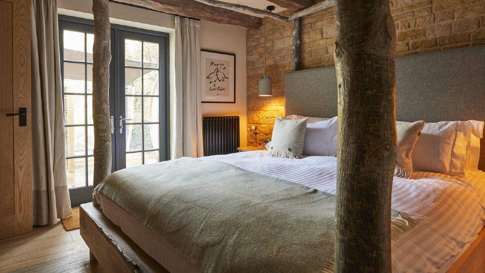 Two dozen bedrooms plus events spaces have been created using honey-coloured local stone, timber cladding and warm textiles, dressed in a calming palette of soft greys and rich creams, while the character of the original pub has been retained. Guests cross a covered courtyard to eat and drink among the regulars at the Crown.