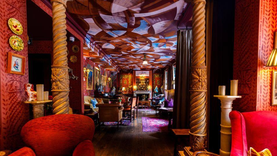 Step through the discreet pale blue door of this Georgian townhouse in one of the quieter streets that cross this fashionable part of the capital, and you find yourself walking into what appears to be the home of a wildly eccentric rich old relative, someone who’s collected an eclectic jumble of souvenirs and design styles from their globe-trotting and stuffed them all in here.