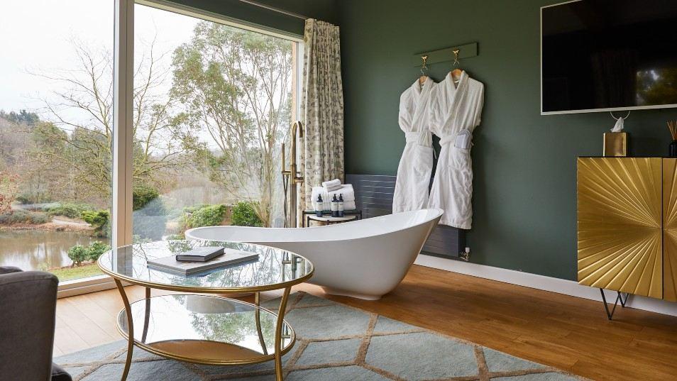 When you’re not bathing in your tub under the stars or simply enjoying your chic room with its modern décor and abstract art, take a wander along the estate’s network of pathways through untamed woods and wetlands, or explore the adjoining Consall Nature Park where you’ll find nature trails, birdwatching and, after a climb to the top of Kingsley Banks, glorious views over rural Staffordshire.
