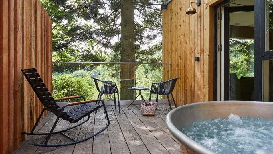 The Tawny is a ‘deconstructed hotel’, its 55 bedrooms are huts, treehouses, lookouts and boathouses, each with its own outdoor decking and spa bath, scattered around 70 acres of gardens, woodland and lakes and blending in beautifully with the natural landscape.