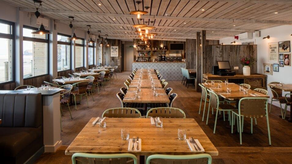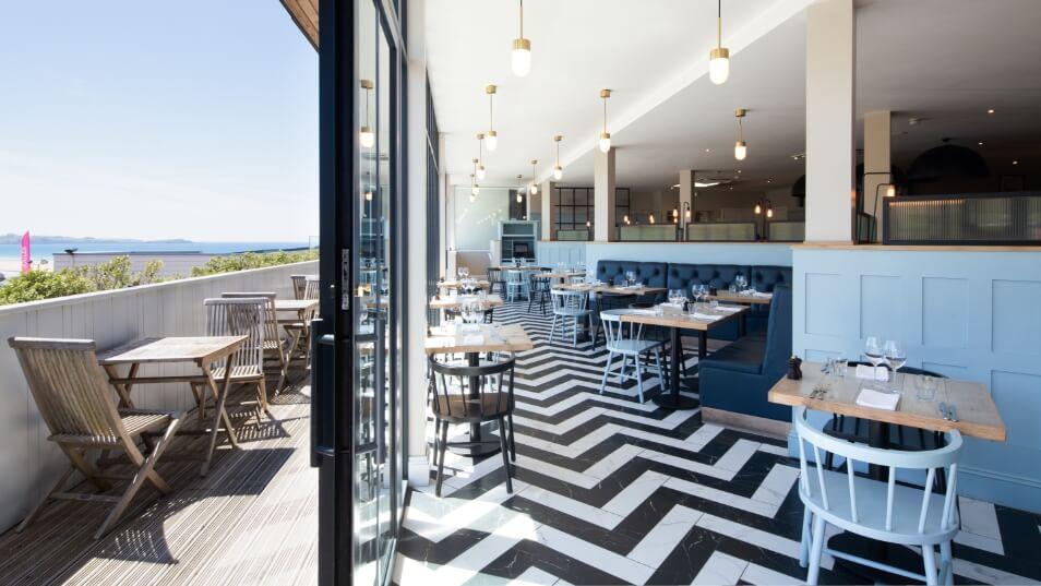 Zacry’s at Watergate Bay is a stylish restaurant with sumptuous banquettes and subtle lighting, headed by head chef Neil Haydock. It offers contemporary and bold British food from a seasonal menu, prepared using a charcoal oven.