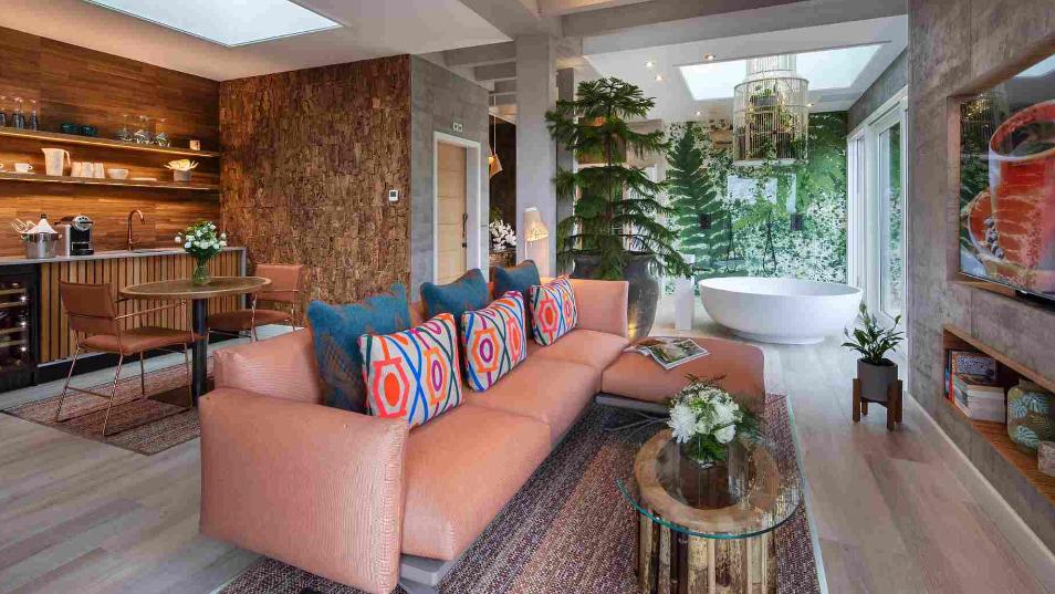 At Gilpin Hotel you’ll be surrounded by 21 acres of grounds glittering with streams and fish-stocked ponds that can be explored via a network of paths. Here each of their 30 bedrooms boasts enchanting Lakeland vistas, with the majority offering direct access to the lush gardens. Among them, 6 Junior Suites and 6 Garden Suites beckon with their own decked or slate patios, complete with private outdoor hot tubs. For those seeking an even more indulgent escape, their 6 Spa Lodges feature ensuite spa facilities, including rainmaker showers and indoor steam rooms, complemented by hydrotherapy hot tubs and outdoor saunas. The 6 ultra indulgent Spa Suites redefine opulence with a bedroom seemingly 'floating' over a serene pond, showcasing mountain panoramas. These suites also encompass a spacious living area replete with a lounge, dining table, and bar, an oversized circular stone bath, double shower, a sumptuous spa room housing a sauna, steam room, infrared lounge bed, and state-of-the-art automated massage chair, all enhanced by a generously sized outdoor hot tub.