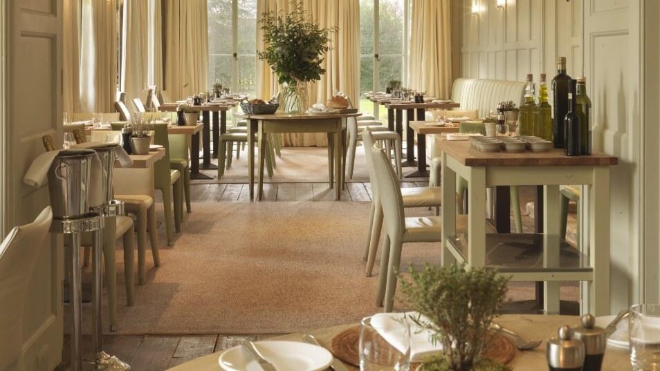 Dining at the hotel, the Potager overlooks the gardens and terrace and provides dishes prepared using fresh and local ingredients, as well as those picked and sourced from the kitchen garden.