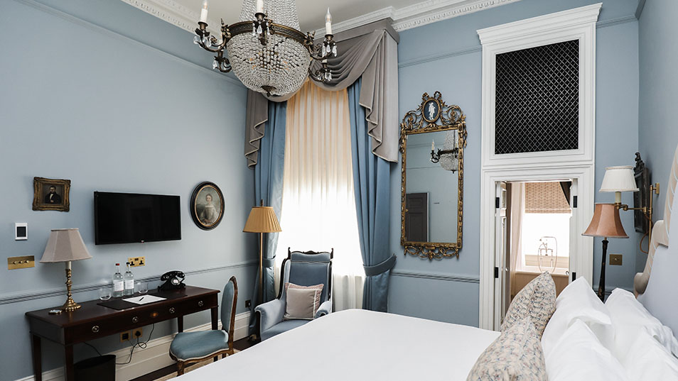 Every bedroom features its own interior style with beautiful fabrics, an abundance of diverse artworks and antique furniture. This is combined with the finest functional modern amenities including air con, Dyson Hairdryers, coffee machines, luxury tea selections, a complimentary mini bar filled with Press Smoothies and a curated selection of its favourite British artisan spirits.